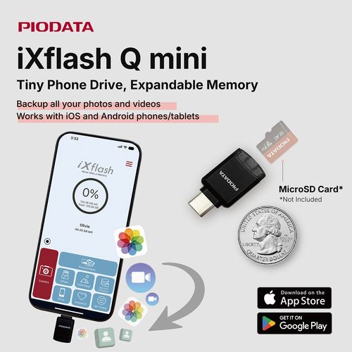 With the free iXflash app (iOS) or free PioData app (Android), backing up and transferring photos, videos, and contacts takes just a few taps. It can automatically back up all your photos and videos, including those stored in iCloud, for iPhone and iPad, when connected to Wi-Fi. For added flexibility, you can transfer content to a PC, Mac, or any device with a USB-C or MicroSD port.