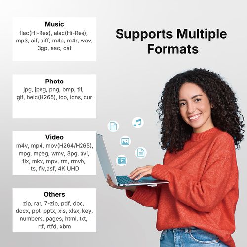 - Media Storage & Playback: Store and stream 4K movies* and Hi-Res audio without filling up iPhone or iPad memory; compatible with popular video formats (AVI, MP4, MKV, MOV, WMV, and more) and audio formats (FLAC, WAV, MP3, AAC, APE, and more); perfect for movie lovers and music enthusiasts.*Please note: streaming app content (like Netflix, Hulu, etc.) cannot be saved or played, as it is restricted to their proprietary apps.